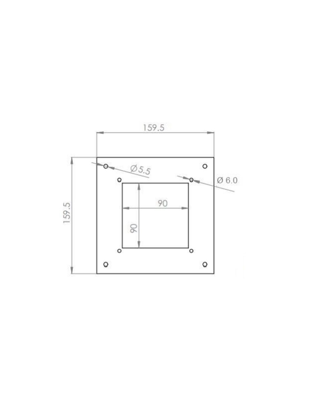 Lxlxh : 159,5x159,5x2 mm